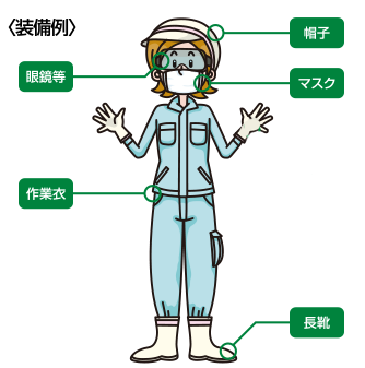 農薬散布を行うときの服装は以下の内容をお守りください。
