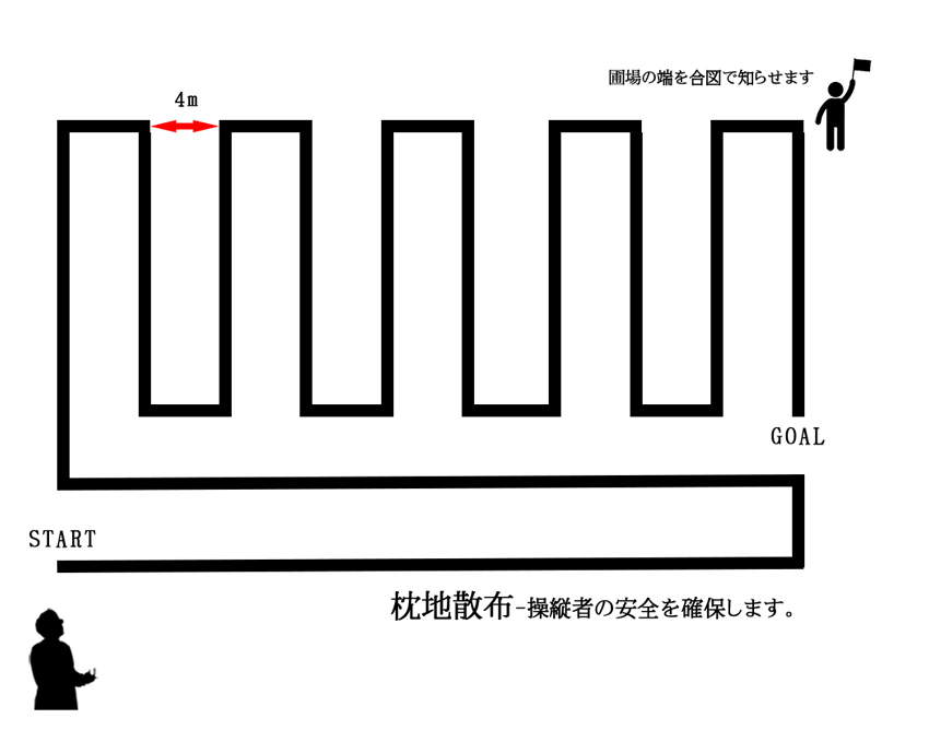 操縦者を保護するために、オペレーターの付近、手前側は横向きに散布を行います。そうすることで、機体を操縦者に近づける回数を少なくしオペレーターの安全を確保します。この作業方法を枕地散布といいます。